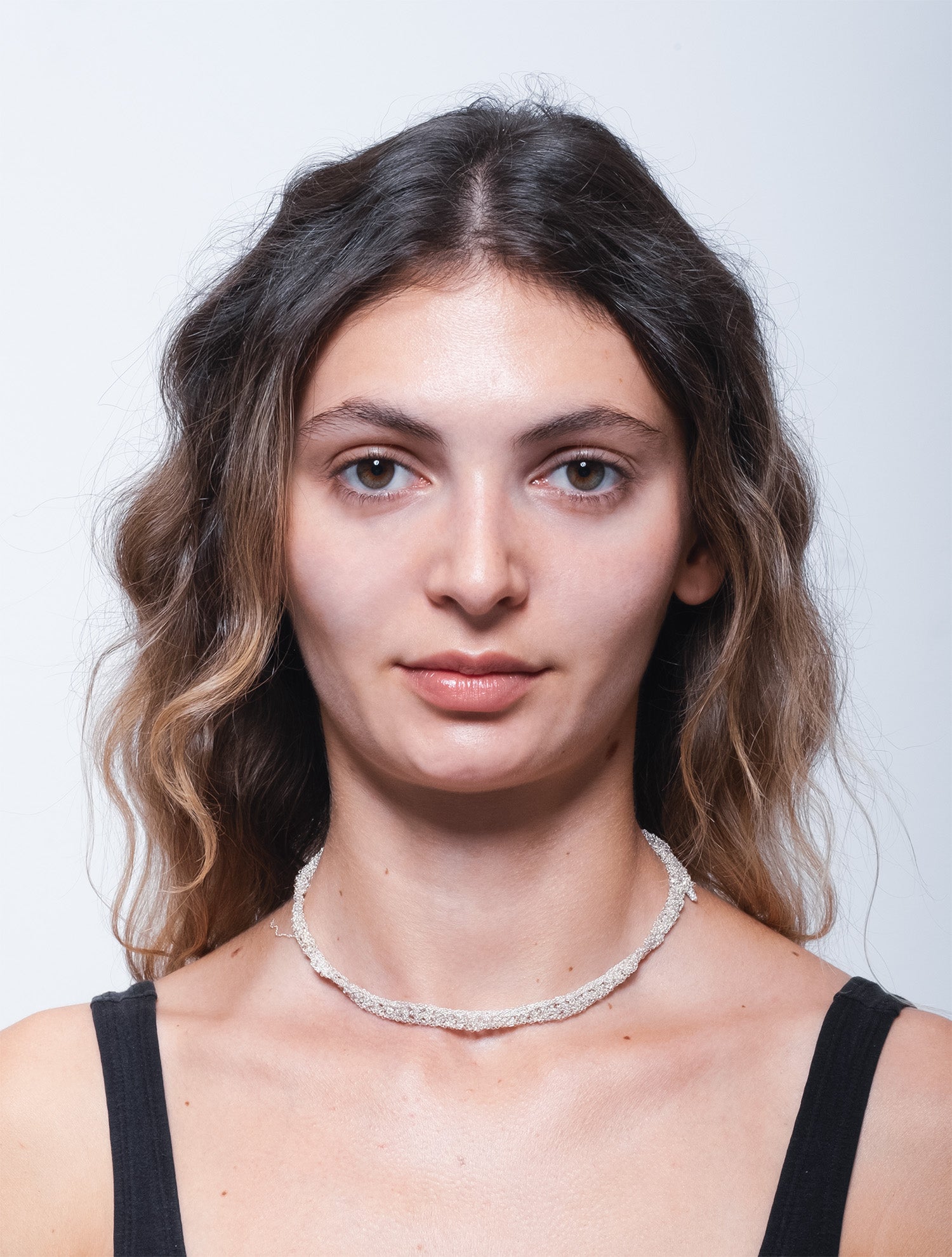 Gentle yet grounded, the Cradlecreek necklace is hand-knitted from a 0.8mm 925 silver cable chain, forming a soft, irregular silhouette that flows like water held in tension. It features a delicate clasp, extension chain, and a 3D-printed branded pendant, - subtle anchors for a piece that whispers rather than shouts.