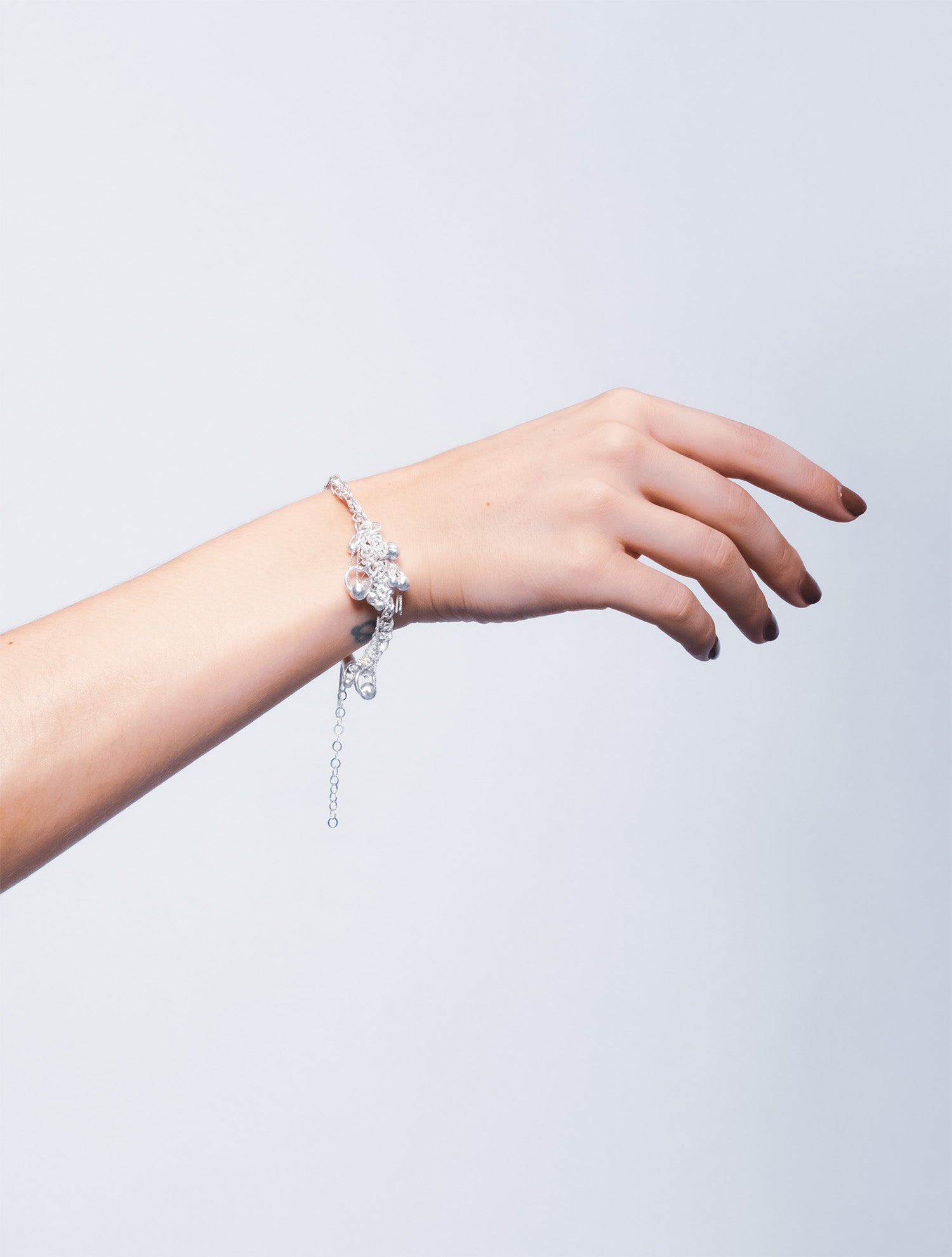 The Frogspawn Bracelet evokes the tender geometry of early spring,- chains interwoven like the clustered promise of life beneath the surface.